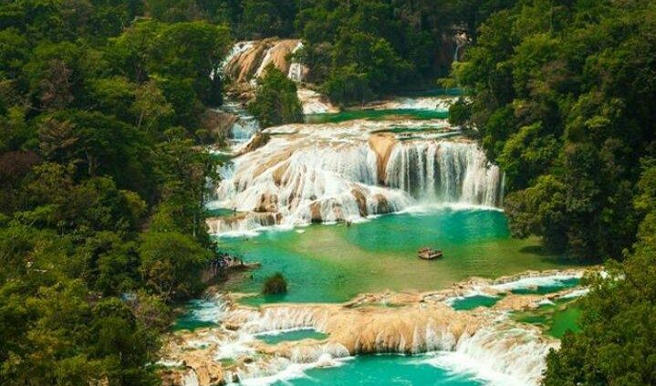 Salida de San Cristóbal para emprender un viaje de aproximadamente dos horas y media entre montañas llenas de árboles de pino, pequeños pueblos de diferentes etnias, siguiendo esta ruta llegaremos a un gran valle el cual está formado por grandes cañaverales ya que en esta área está instalado el ingenio azucarero más grande del estado de Chiapas, justo después de esta área se encuentra un lugar paradisiaco en el cual abunda el agua transparente, cascadas y pozas con agua de color azul justo en las montañas, con una vista maravillosa hacia el horizonte podemos contemplar el río “La Angostura”, esto será solo el inicio de la magia que nos espera en las 3 Tzimoleras. Nuestra parada será la población de “Tzimol” donde tomaremos una unidad todo terreno y comenzaremos nuestra aventura viajando en la parte trasera abierta para ir teniendo contacto con la naturaleza, Al llegar a nuestro destino descenderemos de la unidad y caminaremos un pequeño sendero con un paisaje lleno de vida natural silvestre, que sin duda seducirá a nuestros sentido y nos conducirá a la cascada más próxima para nadar debido a la poca profundidad de sus posas, aunque también podremos disfrutar de sus posas profundas, nos divertiremos y sumergiremos en ellas gracias a las cascadas de 60 metros de altura que les dan vida, tranquilas y preciosas aguas que harán de esta una experiencia inigualable. Que nos hará sentirnos en el paraíso, tendremos tiempo de consumir un pequeño refrigerio el cual está incluido básicamente para recargar energías, por la tarde emprendamos el regreso en la unidad de transporte especial para retornar al poblado de “Tzimol” donde nos estará esperando la unidad que nos trasladará de regreso a San Cristóbal de las Casas.